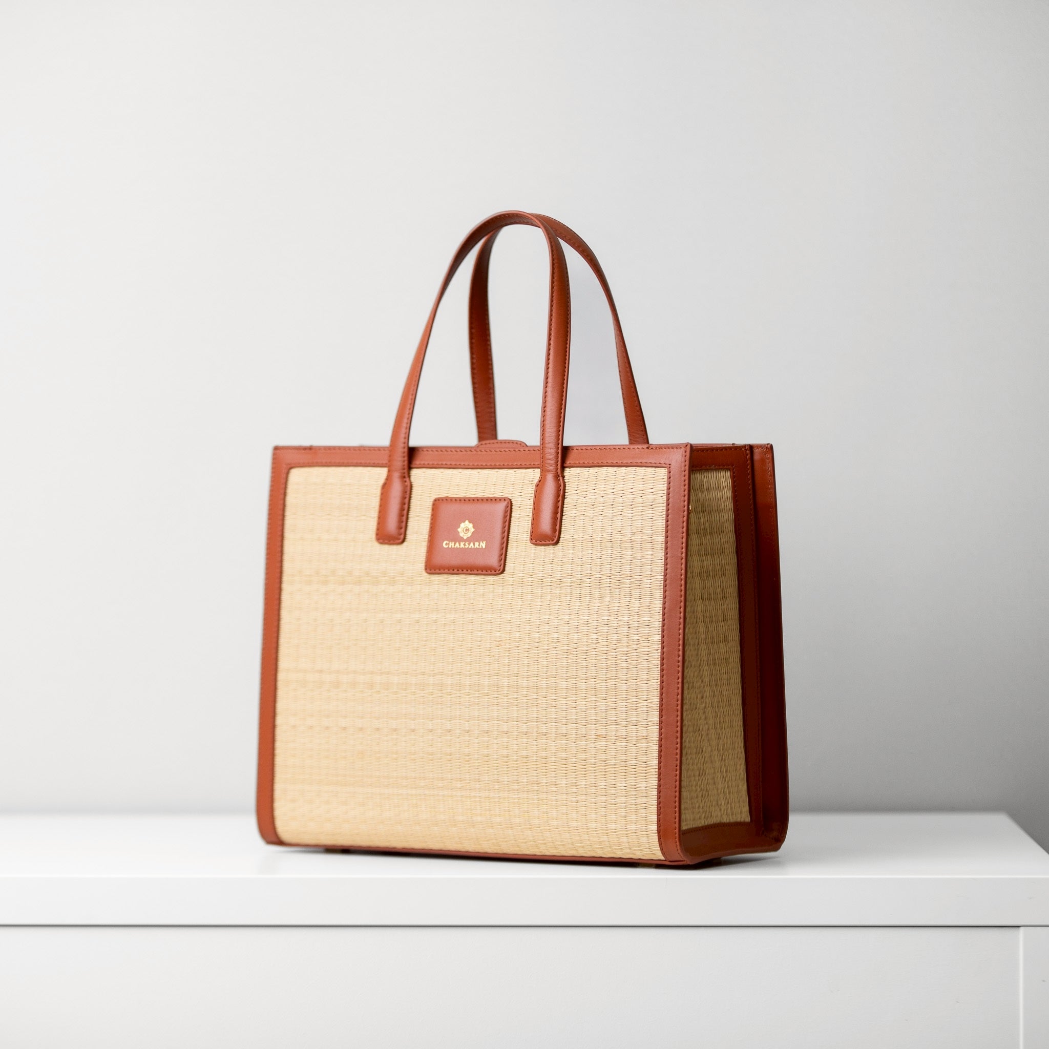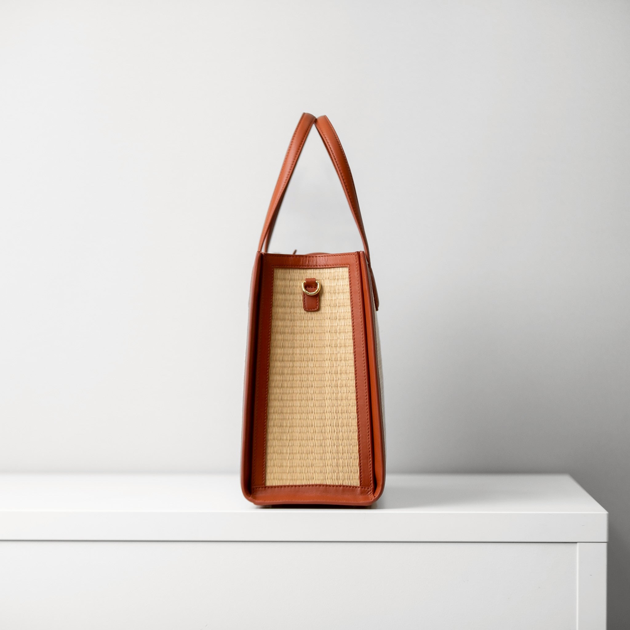 Chaksarn Medium Tote is an everyday rectangular tote bag that will carry your necessities with style. The bag is unique with different colours and patterns from the woven sedge. The genuine leather and exquisites swaying technique add quality and luxury touch to the bag.