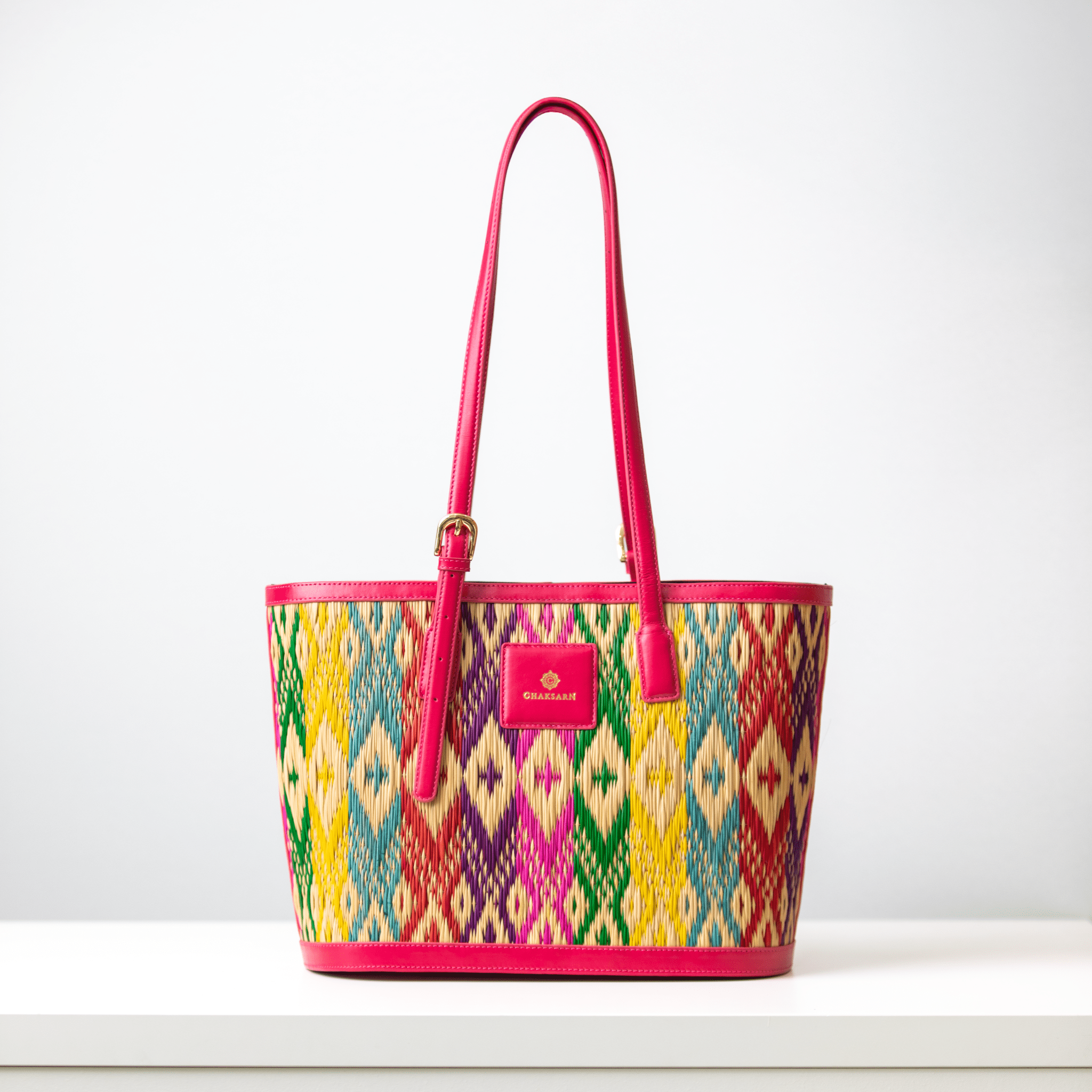 Crafted from handwoven Thai water sedge and trimmed with genuine cow leather, this bag blends traditional craftsmanship with modern function. The adjustable shoulder strap is permanently attached for a clean, effortless look, while the structured shape keeps your essentials organized and secure.