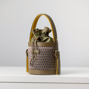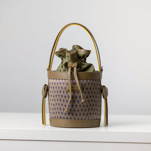 Showcasing the timeless beauty of handwoven Thai silk, the Mini Krathip Bag by Chaksarn is a modern accessory rooted in tradition. This stylish mini bucket bag highlights the unique artistry of Thai silk weaving, skillfully crafted by artisans from Isaan, a region in northeastern Thailand.
